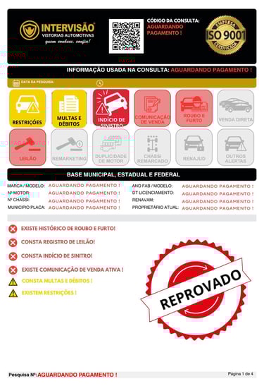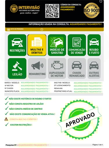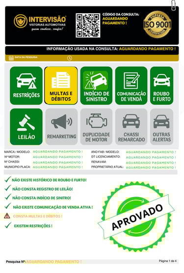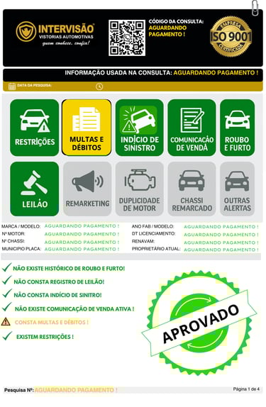 Veja todas as informações essenciais antes de comprar: sinistro, leilão, débitos, restrições, roubo/furto e muito mais.
